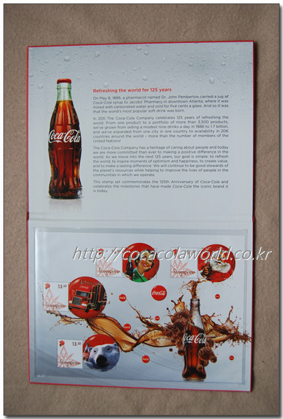 오늘 소개드리는 아이템은 싱가포르 우체국(Singapore Post Ltd. 정확히는 싱가포르 우편 유한회사라고 하는게 맞을 것 같기도 하네요)에서 코카-콜라 싱가포르(Coca-Cola Singapore)와 제휴를 맺고 발매한 코카-콜라 125주년 기념 우표첩입니다.