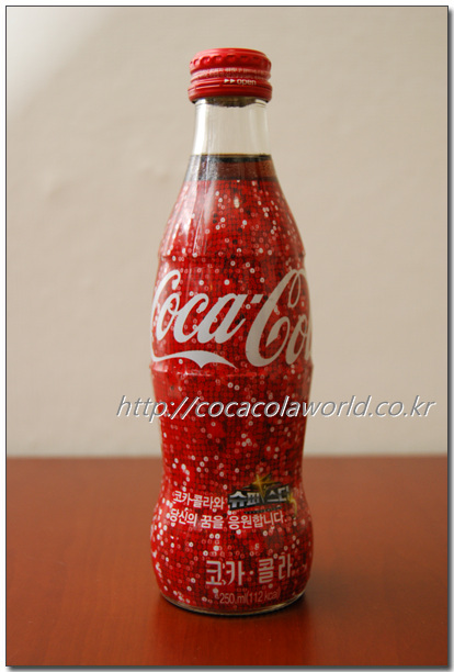 코-크 트로피 에디션 코카-콜라는 250ml 용량의 유리병에 전면 랩핑한 형태입니다. 그리고 랩핑 디자인은 코카-콜라의 상징색이라고 할 수 있는 빨간색 바탕에 작은 CD들을 발처럼 엮어 마치 반짝이 의상이나 미러볼 같은 이미지가 전체 보틀을 둘러싸고 있는 모습입니다.