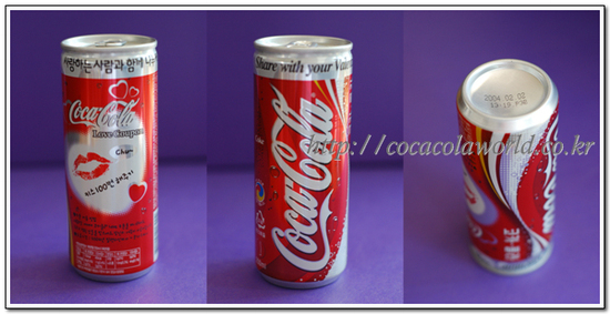 2004년 2월 발렌타인데이 기념 코카-콜라 디자인 패키지입니다. Love Coupon이라는 단어와 입술 자욱을 모티프로 활용하였습니다.
