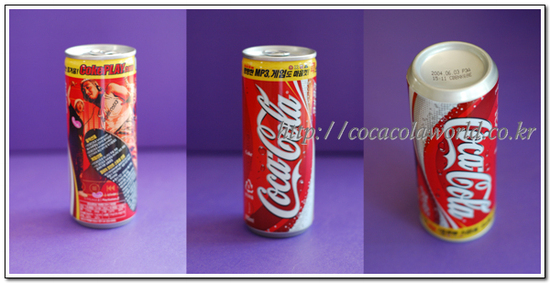 2004년 4월 코카-콜라의 프로모션용 웹페이지 코크플레이(CokePLAY)가 오픈하고, 250ml와 245ml캔 모든 패키지는 해당 내용을 고지하는 디자인으로 다 바뀌었습니다. 245ml캔은 일반 소매점이 아닌 치킨집, PC방 같은 일반 소매점이 아닌 곳에 유통하기 위해 나온 캔인것으로 추측되며 대략 이 때부터 사용된 것 같습니다.