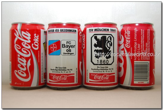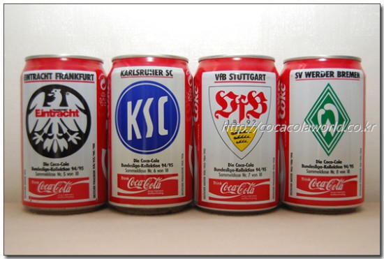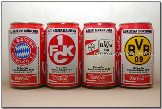 코카-콜라가 세계 각지 에서 다양한 스포츠 행사를 후원하는 것은 다 아시죠? 코카-콜라는 수 십년간 올림픽과 FIFA 월드컵의 메인 스폰서를 하고 있으며, 그 외에도 다양한 스포츠 경기나 리그를 후원하고 있습니다. 오늘은 최근에 입수한 94-95 시즌 분데스리가 코카-콜라 캔 세트를 소개합니다.