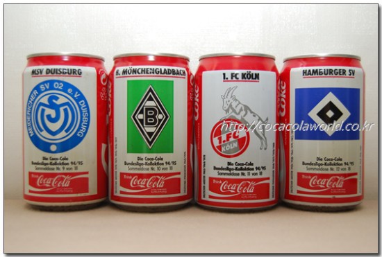 코카-콜라가 세계 각지 에서 다양한 스포츠 행사를 후원하는 것은 다 아시죠? 코카-콜라는 수 십년간 올림픽과 FIFA 월드컵의 메인 스폰서를 하고 있으며, 그 외에도 다양한 스포츠 경기나 리그를 후원하고 있습니다. 오늘은 최근에 입수한 94-95 시즌 분데스리가 코카-콜라 캔 세트를 소개합니다.