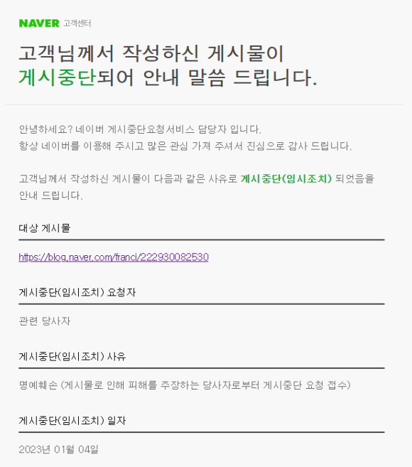 방금 전에 바로 네이버에 재게시 요청했습니다. 그래도 30일은 걸릴 것 같습니다. 그 동안 똑같은 방법으로 영업하고 또 저 같은 불쾌한 경험을 하는 분들 생기겠죠.